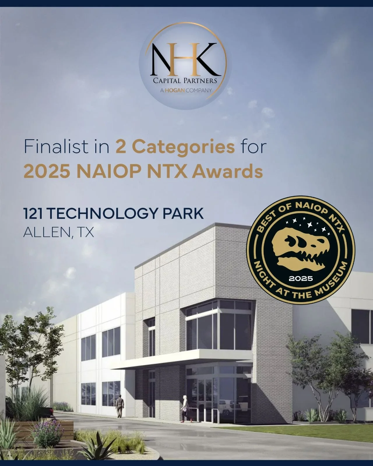 Thrilled to share that our 121 Technology Park development has been named a finalist in two categories for NAIOP's 2025 Best of North Texas Awards: “Industrial Development of the Year” and “Innovative Development of the Year.”