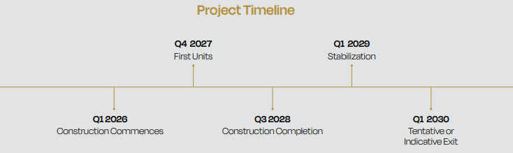 The groundbreaking ceremony was successfully completed on January 31, 2026. The project is currently on track for a tentative exit in Q1 2030.