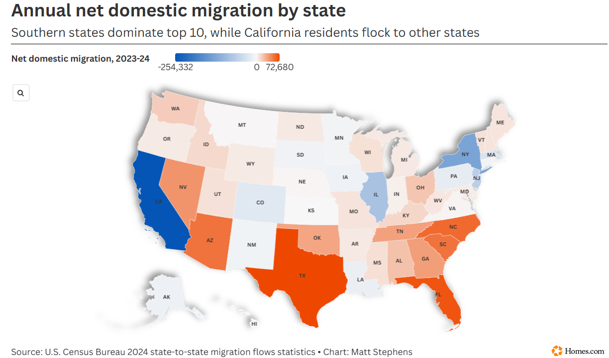 While Texas added tens of thousands of new residents from other states, California and New York saw the most significant losses, with California alone losing over 250,000 people. As Brad Case, chief residential economist for Homes.com, notes, this movement is fundamentally driven by financial and lifestyle optimization. For real estate investors, this sustained influx of "new Texans" provides a permanent tailwind for both multifamily and single-family rental demand, ensuring high occupancy rates in key metropolitan hubs like Dallas and Houston.
