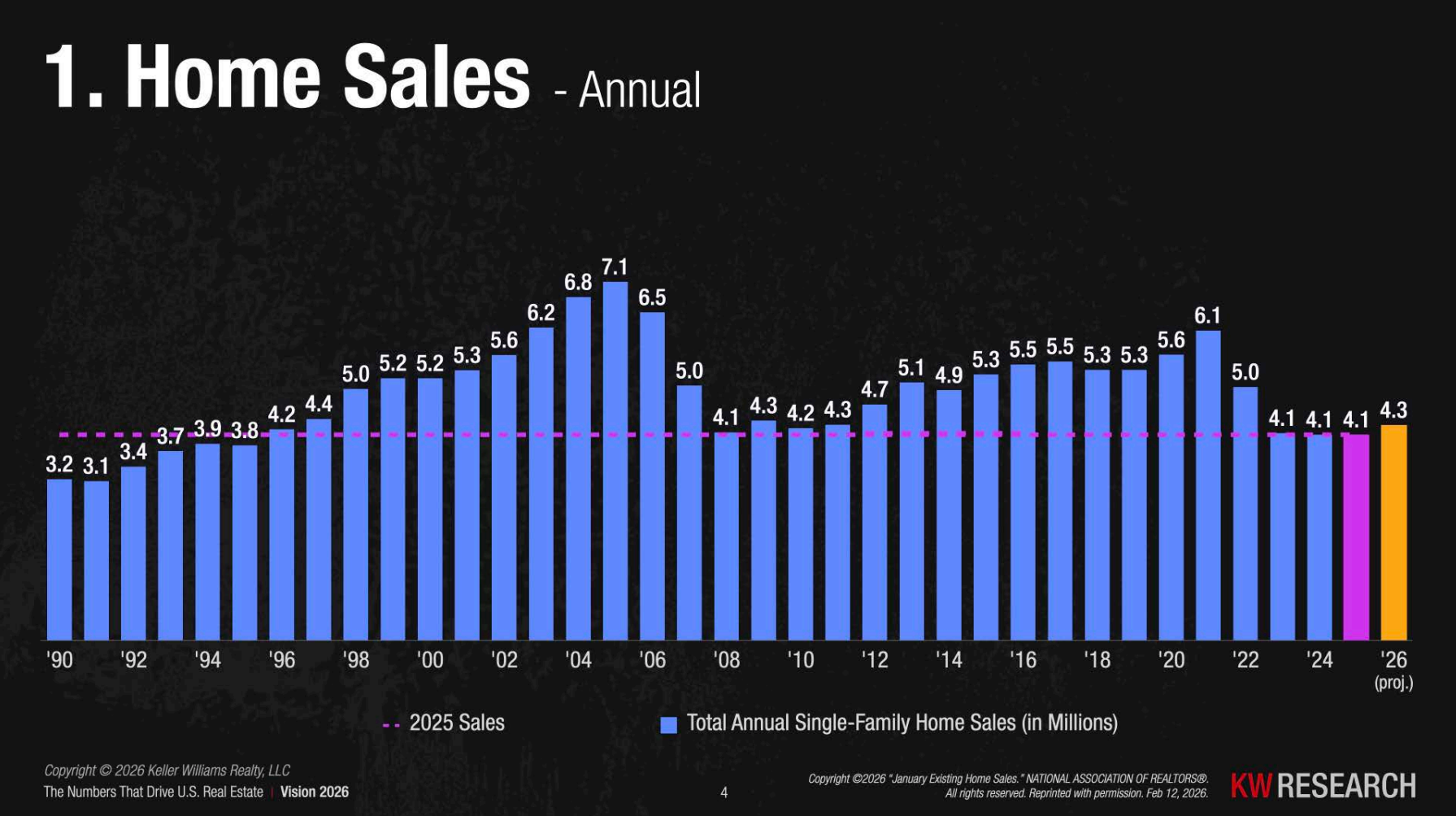 Home sales remain below long-term averages. Historically, the U.S. housing market has typically seen around 5 to 5.5 million homes sold annually, with the peak occurring during the mid-2000s housing boom.