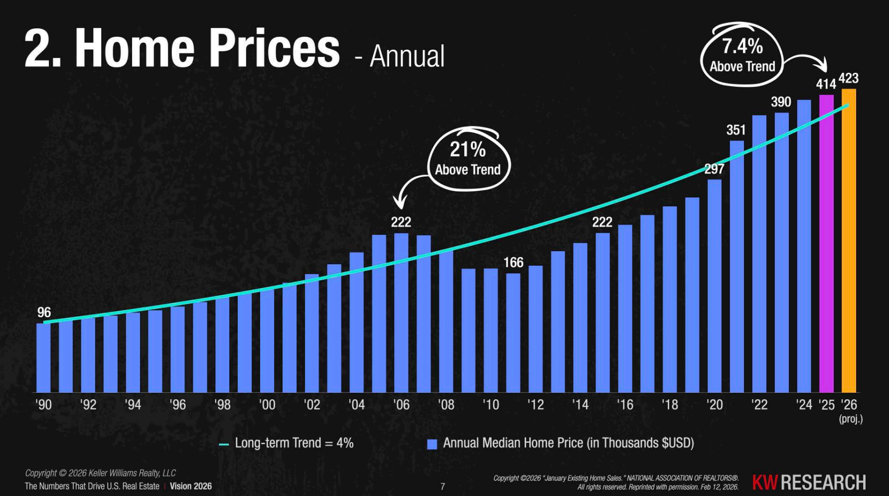 Despite fluctuations in the short term, home prices continue to follow a long-term upward trend. Over the past several decades, U.S. home prices have appreciated at an average rate of roughly 4% annually.